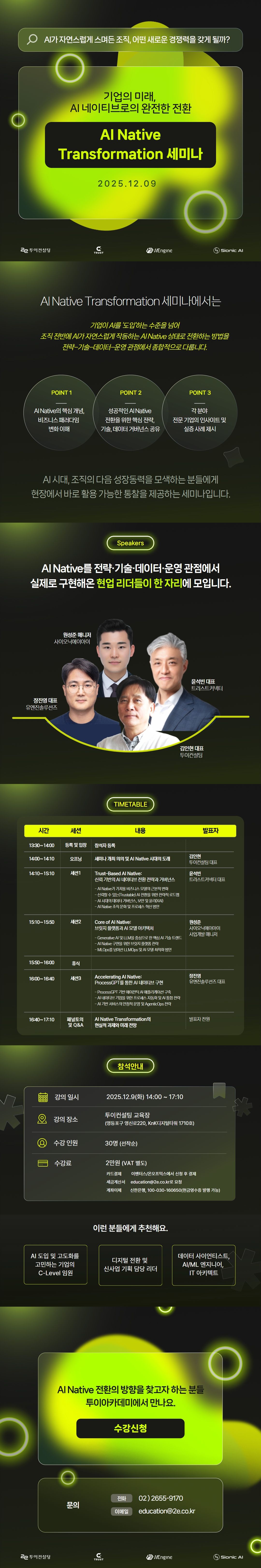 12월 9일 열리는 AI 네이티브 트랜스포메이션에서 그 해답을 모색해 봅니다. 많은 성원 부탁드립니다.