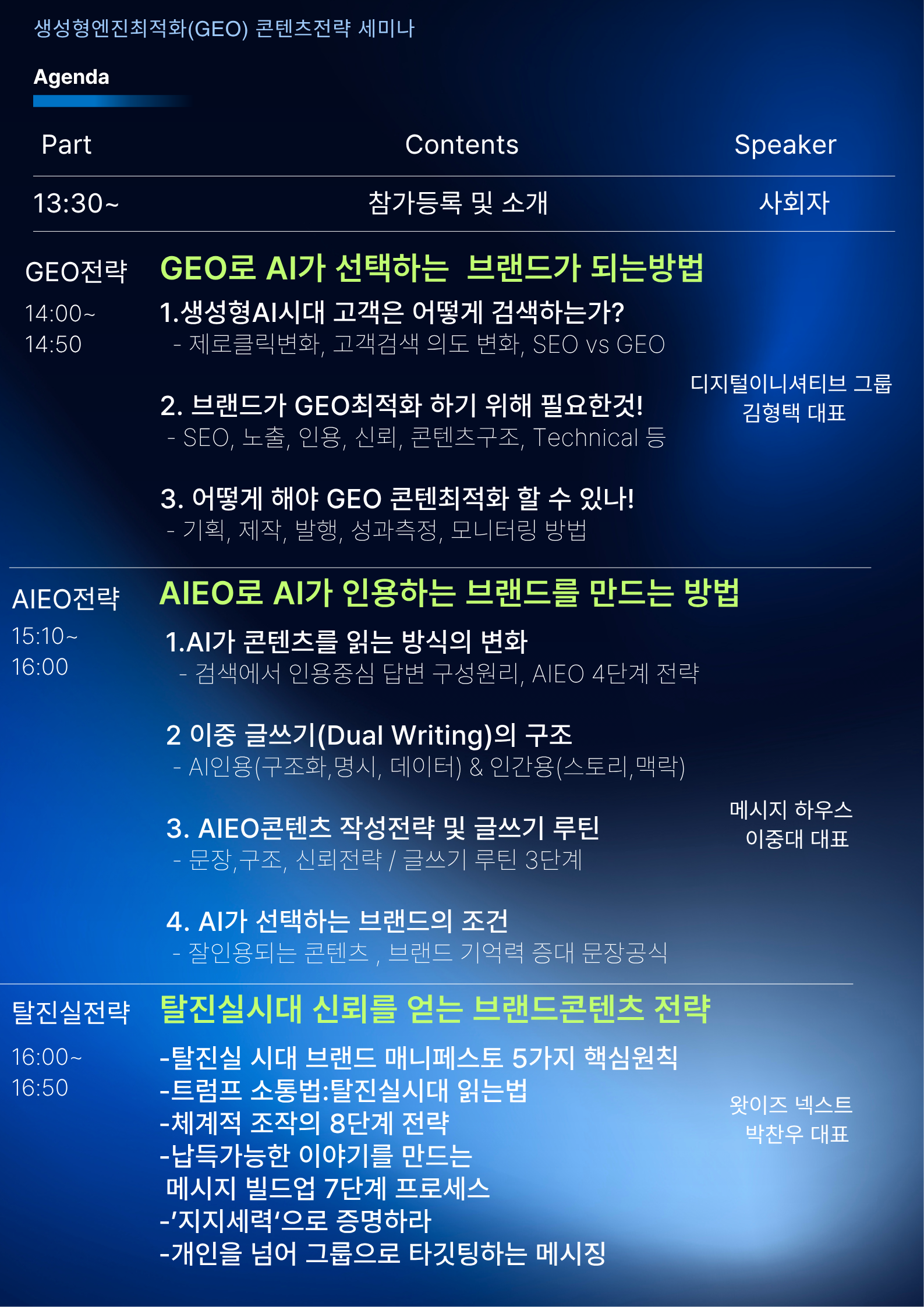 [세미나]AI가 선택하는 콘텐츠 최적화 방법 – 생성형엔진최적화(GEO)콘텐츠전략